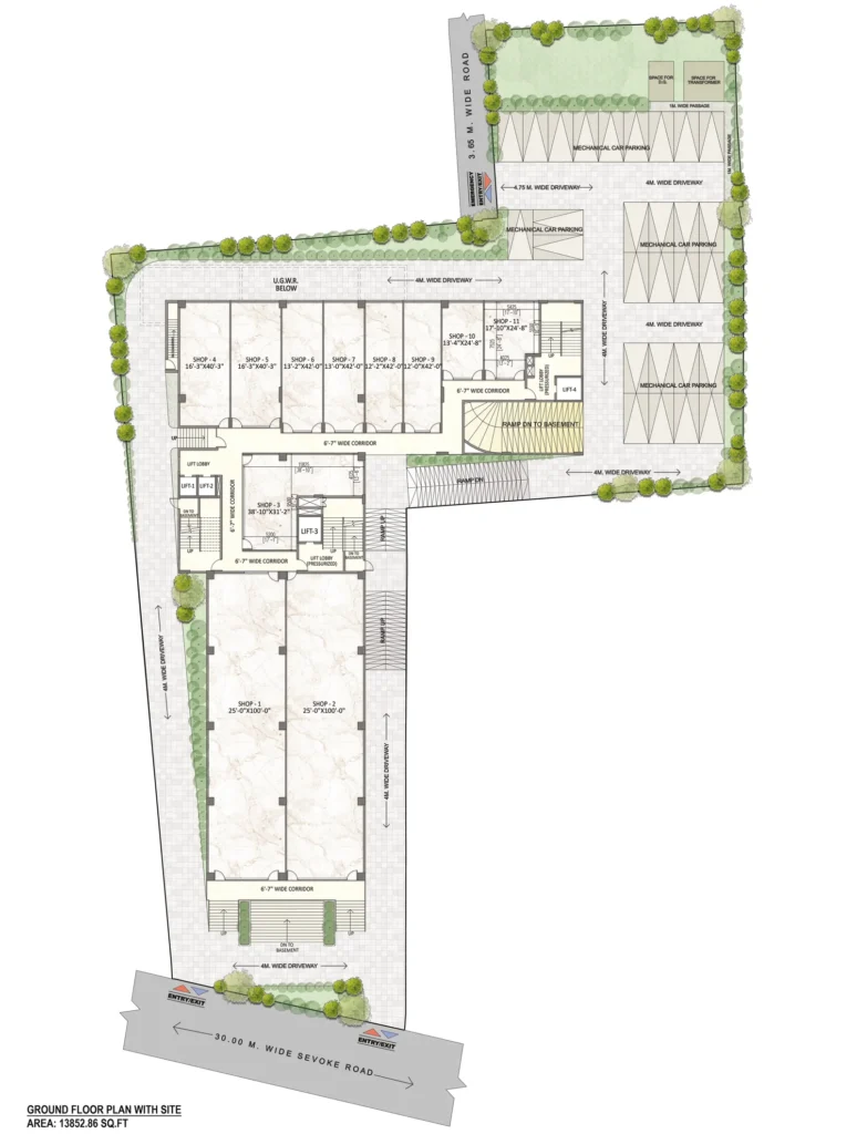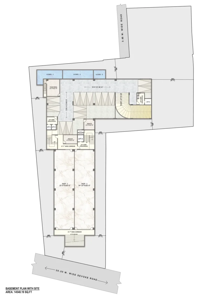 Comprising of G-4 floors with a total leasable surface from 330.07 sq. ft. to 5187.13 Sq. ft. area, the project is located Located at Sevoke Road, which is a prominent central district and is one of the main financial centres. From retail spaces and office buildings, we have something to suit every business need.